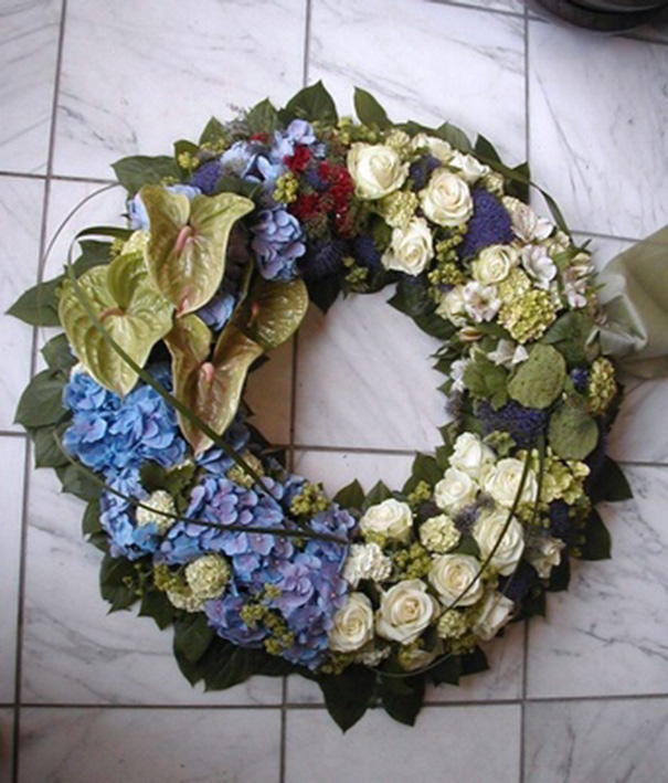 IDE 409 – RUNDPYNTET OASISKRANS CA 70 CM. BLÅ – CREME NATUR